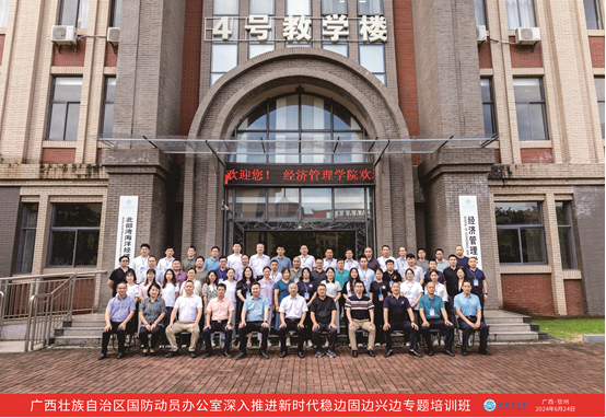 2024年6月24日—28日,广西壮族自治区国防动员办公室深入推进新时代稳边固边兴边专题培训班在北部湾大学4号教学楼报告厅顺利开班。本次培训由广西壮族自治区国防动员办公室主办,北部湾大学经济管理学院、陆海新通道北部湾研究院、北部湾海洋发展研究中心联合承办。北部湾大学校党委常委、副校长闫松银,自治区国动办党组成员、副主任赵越出席开班仪式并讲话。