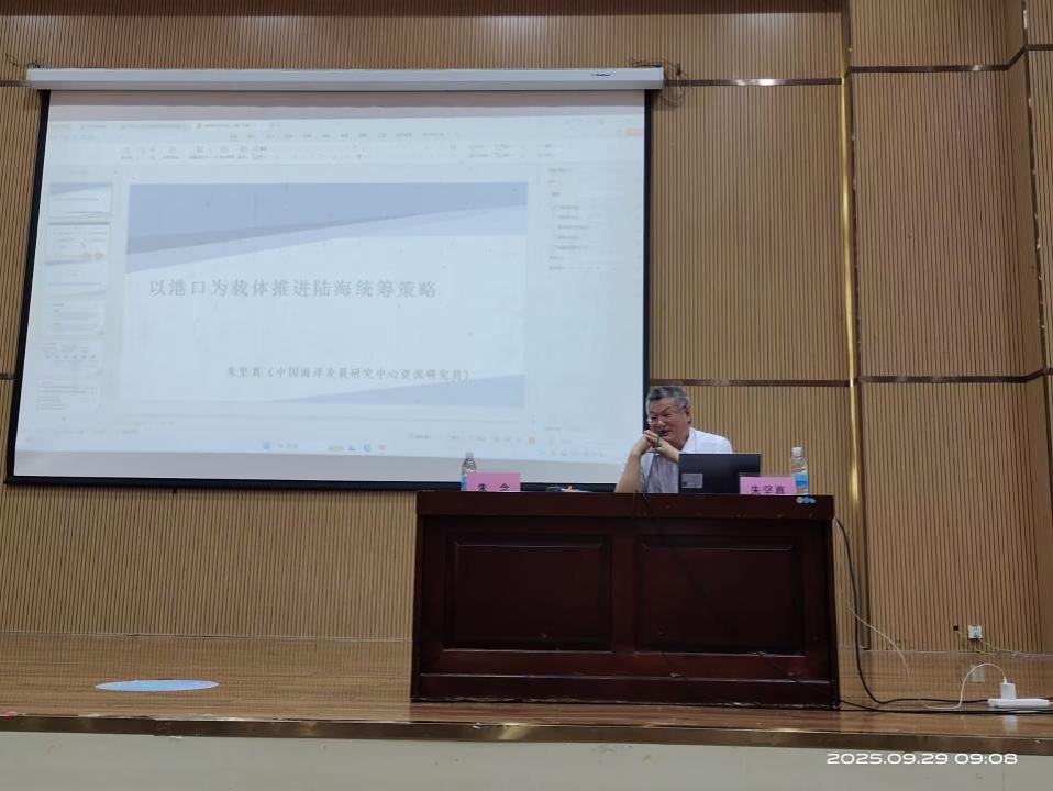 朱坚真教授深入阐述了港口在推动陆海资源整合、产业联动与空间协同发展中的关键作用;他强调,强化港口枢纽功能是推动构建陆海统筹新格局、服务区域经济高质量发展的重要路径。讲座结束之后,朱坚真教授前往研究院进行现场指导,听取工作人员简要介绍研究院的基本情况及面临的瓶颈问题等,双方就未来研究方向与重点进行了深入交流。